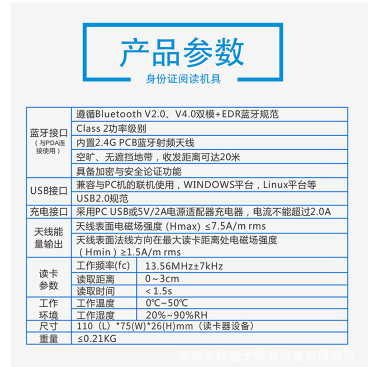 (*由于產(chǎn)品升級或其他原因,華視CVR-100BF身份證閱讀器產(chǎn)品實(shí)際參數(shù)有可能變更,以實(shí)際產(chǎn)品為準(zhǔn)。本文中的所有陳述、信息和建議也不構(gòu)成任何明示或暗示的擔(dān)保)